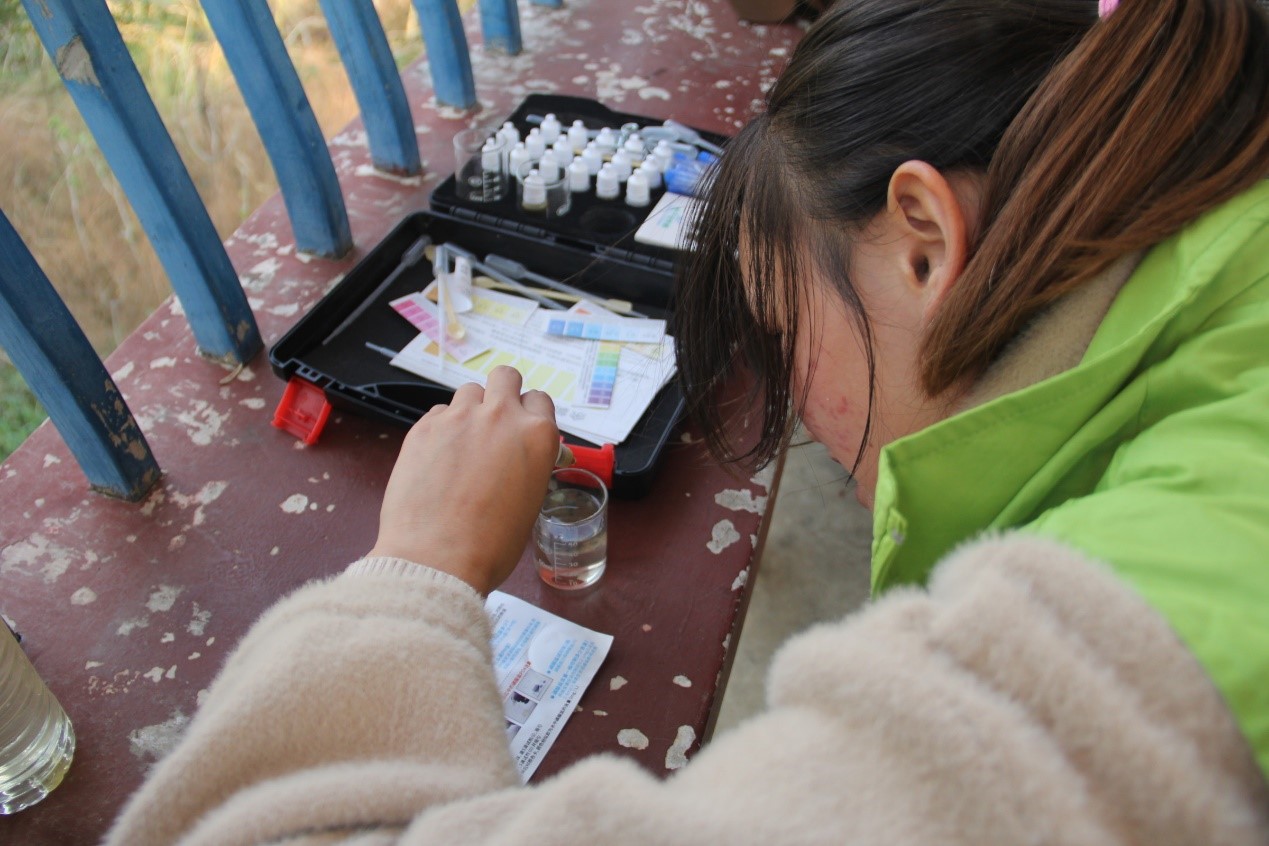 比赛结束后,在爱我百湖协会专家的带领下,志愿者带上垃圾袋和相关水质检测仪器开展了巡湖工作。微波漾漾的湖边,志愿者们沿着湖绿道漫步,捡起身边的垃圾,在取样点采集水样并亲自进行了水样检测。