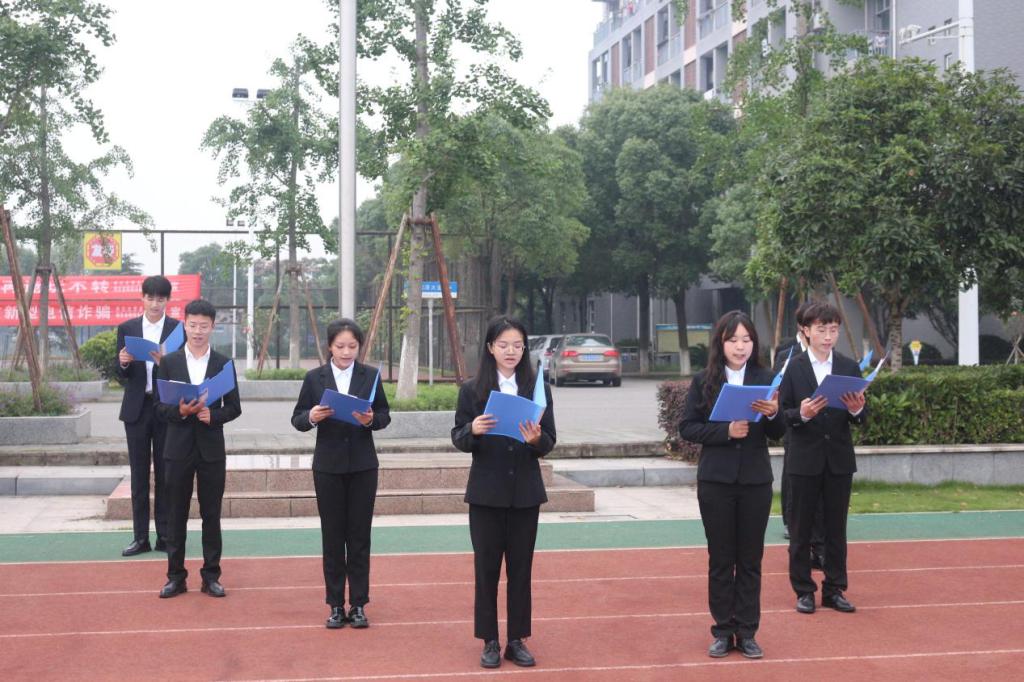 大会第二项,由学生代表张旭等人进行朗诵《庆建党百年,承红色基因》。他们用洪亮的声音歌颂党的伟大:因为有您,我们乘风破浪,因为有您,我们文明富强,因为有您,我们再创辉煌。