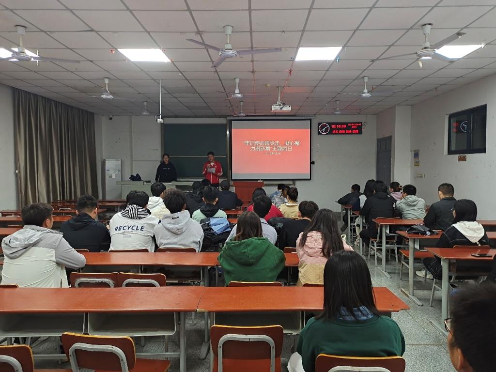 (通讯员 唐坚 文/图)为了更好地学习习近平在庆祝中国共产党成立100周年大会上的讲话”,以史为鉴,开创未来。2021年10月14日下午6点整,21级研究生1班团支书胡煜炜在武教A105教室,开展了有关“牢记使命跟党走,凝心聚力谱新篇”的主题班会,全班同学按时参加。