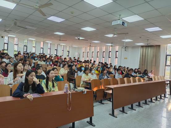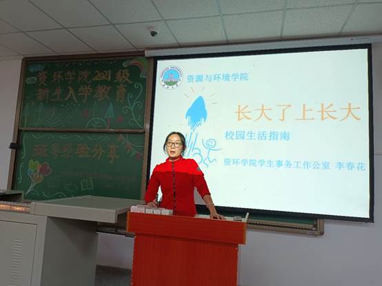 接着,她让大家详细讲解了有关综合测评、奖学金、医保及评优的相关规定。如:从医疗保险的类别到有效的流程再到理赔的材料乃至报案电话等等。在讲座的最后,李春花老师强调了班号的准确认识,学院事务与院办办公室的位置,还有心理健康中心蒲公英之家的具体位置与联系方式,她叮嘱新生们要保持积极向上的生活态度,不要有过于多的心理压力,有困难了可以找同学、班导、老师、蒲公英之家,并祝愿他们可以度过一个充实快乐的大学生活。