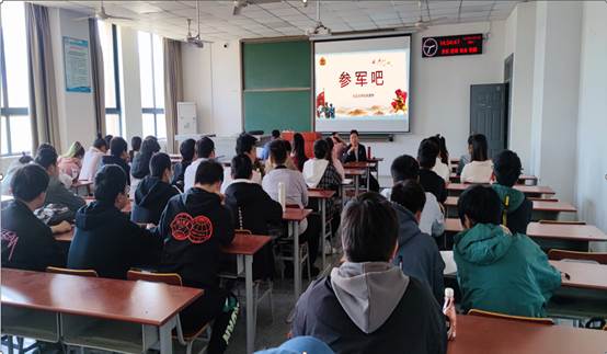 最后,黄鹏老师讲述了身边同学的入伍感受及个人的优秀改变,通过薪资待遇、部队生活的认知、个人的长远发展三个方面再次鼓舞同学们要用自己的力量为祖国明天的发展和安全作出努力,积极参军,保家卫国。此次征兵入伍宣传会议强化了同学们服兵役的责任感和参军保卫祖国的意识,充分调动了同学们报名应征入伍的积极性。