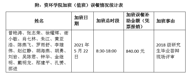 根据《长江大学加班(值班)误餐补助管理办法(试行)》(长大校发【2019】83号)文件规定,现对yL23411永利官网登录加班(值班)误餐情况(2021年5月22日)进行公示,如果对加班(值班)误餐情况有异议,可以通过电话或电子邮件等方式向yL23411永利官网登录办公室反映。