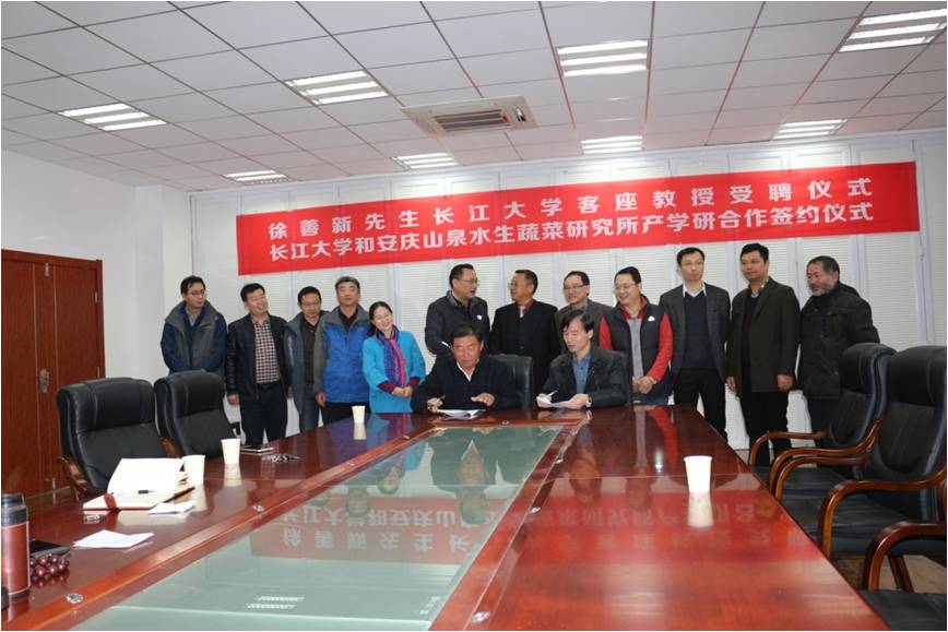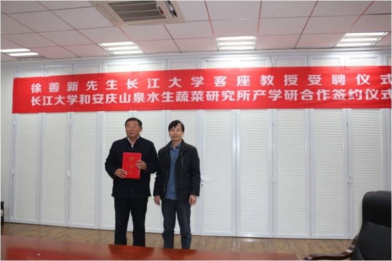 (通讯员 莫晓靥)11月09日上午,安徽安庆市山泉水生蔬菜研究所所长、作家徐善新先生受聘我院客座教授暨安庆山泉水生蔬菜研究所产学研合作签约仪式在石油科技大楼A305举行。