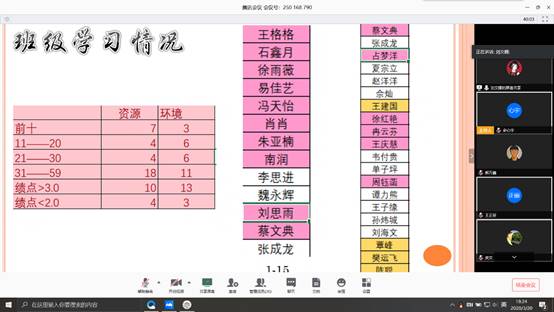 在大家深入交流了观看心得之后,史心宇向大家介绍了疫情期间,支部针对学业预警同学“一对多、多对多”帮扶情况,及疫情期间学院学生工作开展情况。班级导师史心宇、刘文娜、尚建波、汪振宇依次对所负责帮扶班级展开案例分析,分析各班级学生在学习、生活上存在的问题,并提出了相应的帮扶措施,如开学后早晚自习上交手机、坚持每日单词打卡等。
