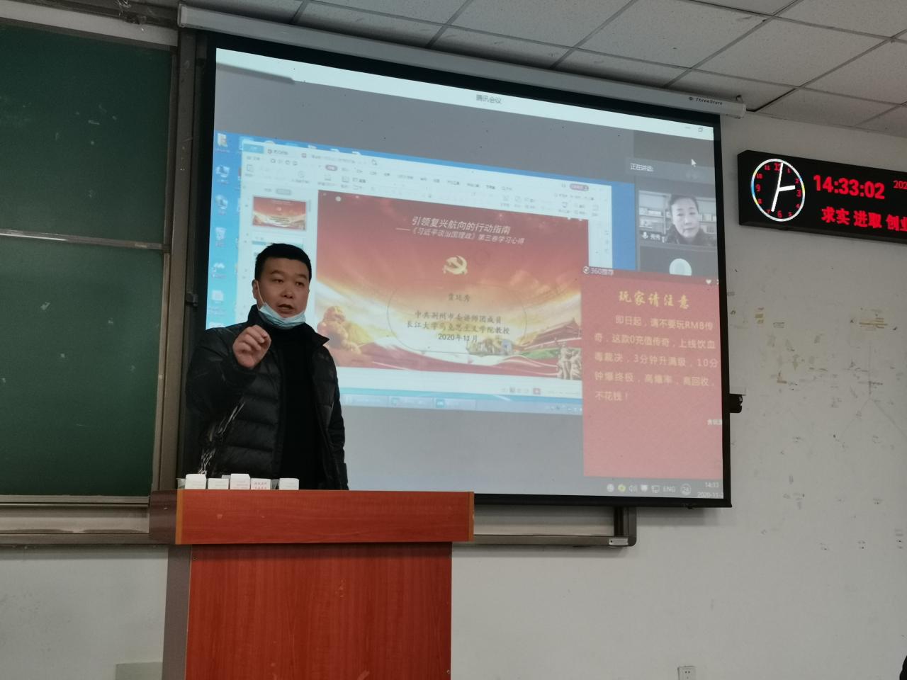 (通讯员 万紫韬 图/文)为深入学习《习近平谈治国理政》第三卷,贯彻落实中央、省委及荆州市委相关工作指示和要求,yL23411永利官网登录党委于11月26日下午2:30在武教A109组织全体党员集中学习《习近平谈治国理政》第三卷。全体教职工党员与学生党员参与了会议。