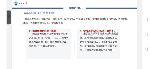 在yL23411永利官网登录2020级本科生英语学情部分,李春花老师展示了2020级各班上学期期末英语成绩,提出应参考高考英语成绩与学习态度及方法两个方面进行英语学情的分析。