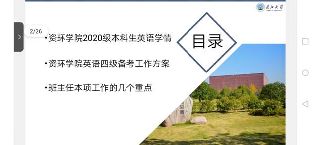 会议中,李春花老师从yL23411永利官网登录2020级本科生英语学情、yL23411永利官网登录英语四级备考工作方案、班主任本项工作的几个重点三个方面展开了动员。