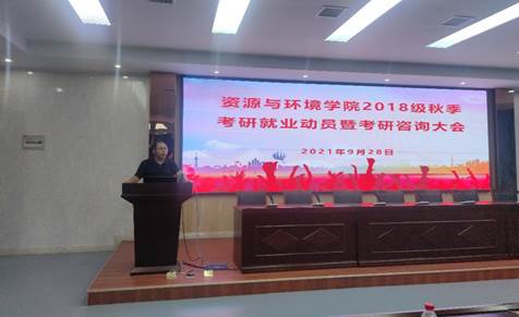 会议伊始,由研究生代表刘于民同学进行发言。他结合自己的实际,向同学们分享了如何兼顾就业和考研复习,不管是考研还是就业,都要充分评估自己,准确定位,并充满信心,在考研和就业的双向选择上更好地把握机会。