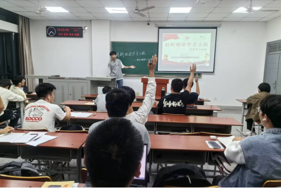 在为期半个月的学习周期内,学习小组首先进行了讨论确定此次创新理论学习的总体内容及流程,列出学习大纲,确定各班级、各支部的学习方式。例如23级学生利用晚自习的时间由班长对创新理论内容进行讲解,并在班中进行互动交流;各团支部利用在开展团会的同时,对创新理论学习内容再次进行强调;在本科生党支部十一月的主题党日活动中,学习小组也利用了这个平台进行了宣传,并呼吁党员起到先锋模范作用,带头进行学习。