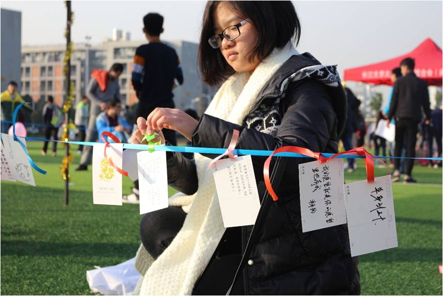 活动的最后,由工作人员现场发放精美贺卡,同学们都很认真的将自己的“心语”写下来,后续会在心理电台中播出。地化21601班彭雨晴同学感慨道:“周末有这样一个放松身心的活动真是太棒了,还感受到了同学们的热情和活动的快乐。希望以后可以有更多的这样的活动可以参加!”