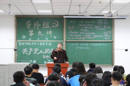 (通讯员 范达福 图/文)为了更好地服务广大同学、开拓学生视野、提高综合素质,2017-2018年度,yL23411永利官网登录学生工作党支部推出“导师组”系列讲座。导师组系系列讲座第九讲与11月15日晚在武教A-102开讲,邀请yL23411永利官网登录党委书记朱思源书记主讲“共产党人的初心”,讲座由学生事务办公室刘娥老师主持,yL23411永利官网登录本科80余名学生按时参加。 讲座伊始,朱思源书记介绍了中国共产党对党员的各项规定和入党条件,阐述了政党的概念,从党所属阶级入手,结合中国共产党成立的特殊历史节点,详细介绍了党的性质和党成立的初衷,即代表中国工人阶级,以实现中国梦